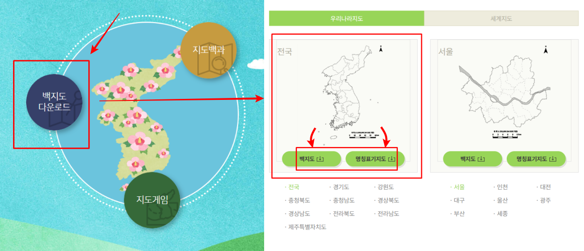 - κ°μ₯ λ¨Όμ λνλ―Όκ΅ μ§λ λμμΈ λ°±μ§λ νμΌμ΄ νμν©λλ€. ν΄λΉ νμΌμ κ΅ν μ§λ¦¬μ 보μμμ λ€μ΄λ°μ νμ©ν μ μμ΅λλ€. λν, ν΄λΉ μ¬μ΄νΈμλ μ§λμ λν μ¬λ¬ ν₯λ―Έλ‘μ΄ μ΄μΌκΈ°κ° μμ΅λλ€. ν΄λΉ μ΄μΌκΈ°λ₯Ό μμ΄λ€μκ² λ€λ €μ£Όλ κ²λ μ’μ νμ΅μ΄ λ μ μμ κ² κ°λ€μ.
