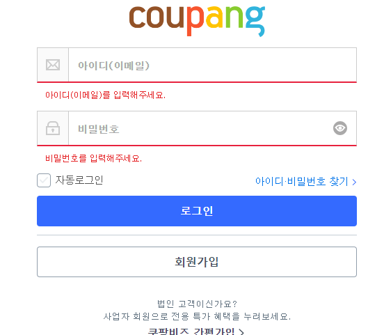 2. μΏ ν‘ λ‘κ·ΈμΈμ ν©λλ€.