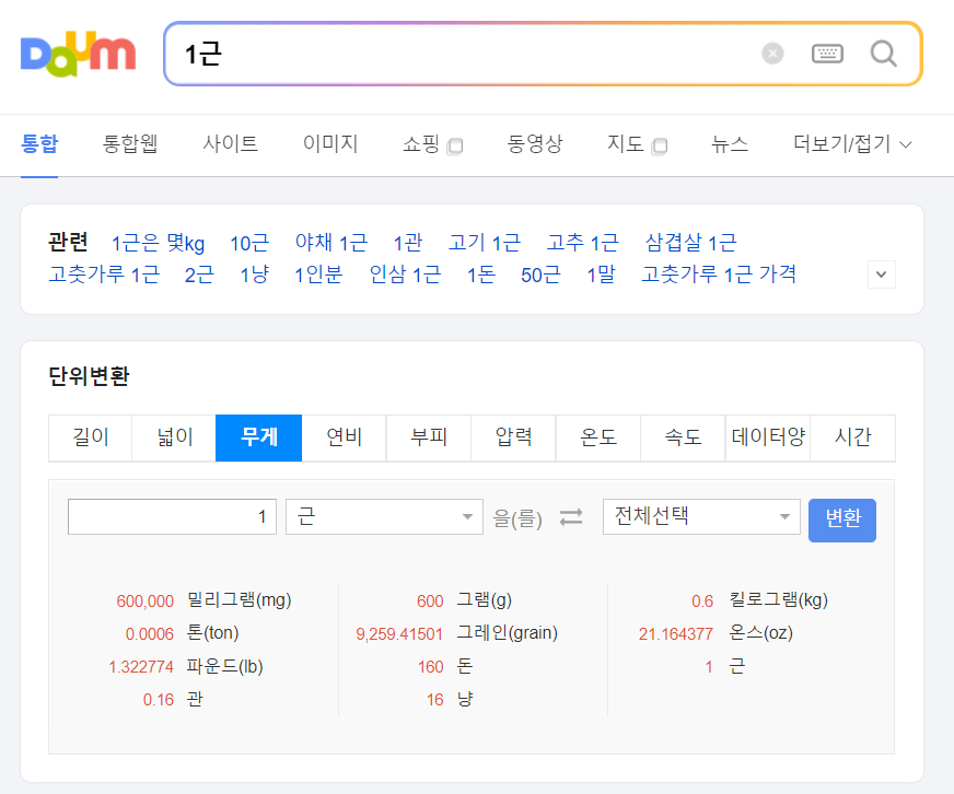 4. 1๊ทผ์ ์ ํํ๊ฒ 0.6kg์ด๋ผ๊ณ ํ๋ค์.
