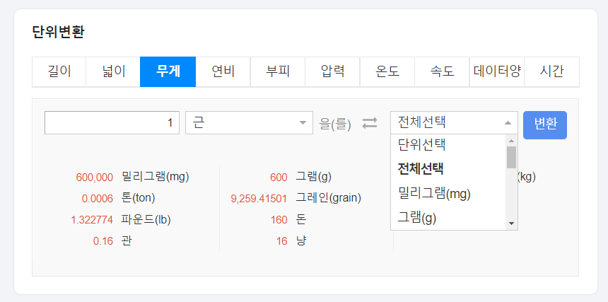 3. ๋ณํ๋๋ ๋จ์๋ฅผ ์ ํํฉ๋๋ค.