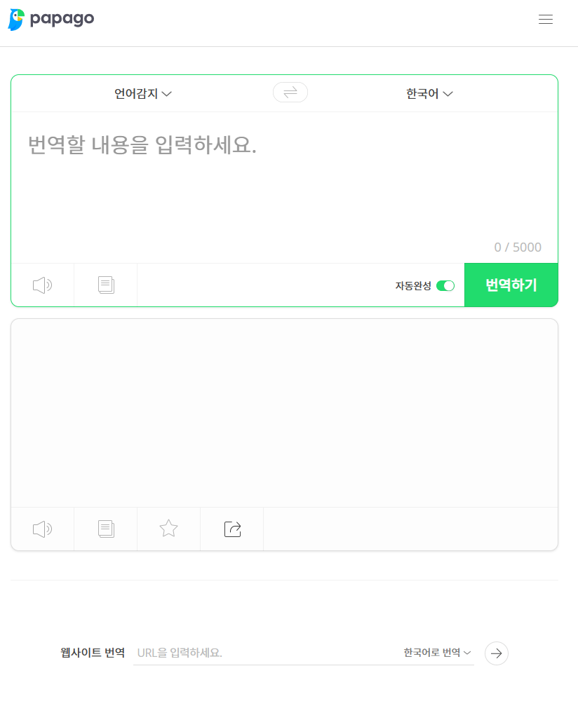 ๋ค์ด๋ฒ์์๋ ๋ฒ์ญ๊ธฐ ํํ์ด์ง๋ฅผ ์ด์ํ๊ณ ์์ต๋๋ค. ํด๋น ์ฌ์ดํธ์ ์ด๋ฆ์ ํํ๊ณ (papago)์ด๋ฉฐ, ํํ์ด์ง(https://papago.naver.com)๋ฅผ ํตํด ๋ฒ์ญ๊ธฐ ๊ธฐ๋ฅ์ ์ฌ์ฉํ ์ ์์ต๋๋ค. ํด๋น ์๋น์ค์์๋ ํํ์ด์ง url์ ํตํด ๋ฒ์ญ ๊ธฐ๋ฅ์ ํ์ฉํ ์ ์๋ค๋ ์ฅ์ ์ด ์์ต๋๋ค.