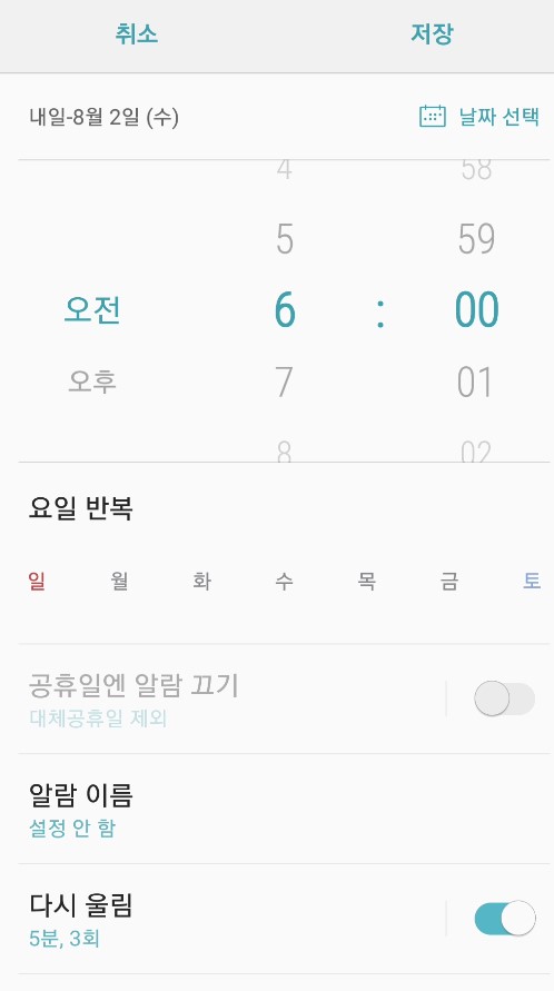 3. μλ μ¬μ§κ³Ό κ°μ΄ μκ°, μμΌ, κ·Έ λ°μ λ΄μ©μ μ€μ ν μ μμ΅λλ€.